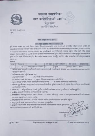 तहवृद्धि सम्बन्धी जयपृथ्वी नगरपालिकाको सूचना !!!