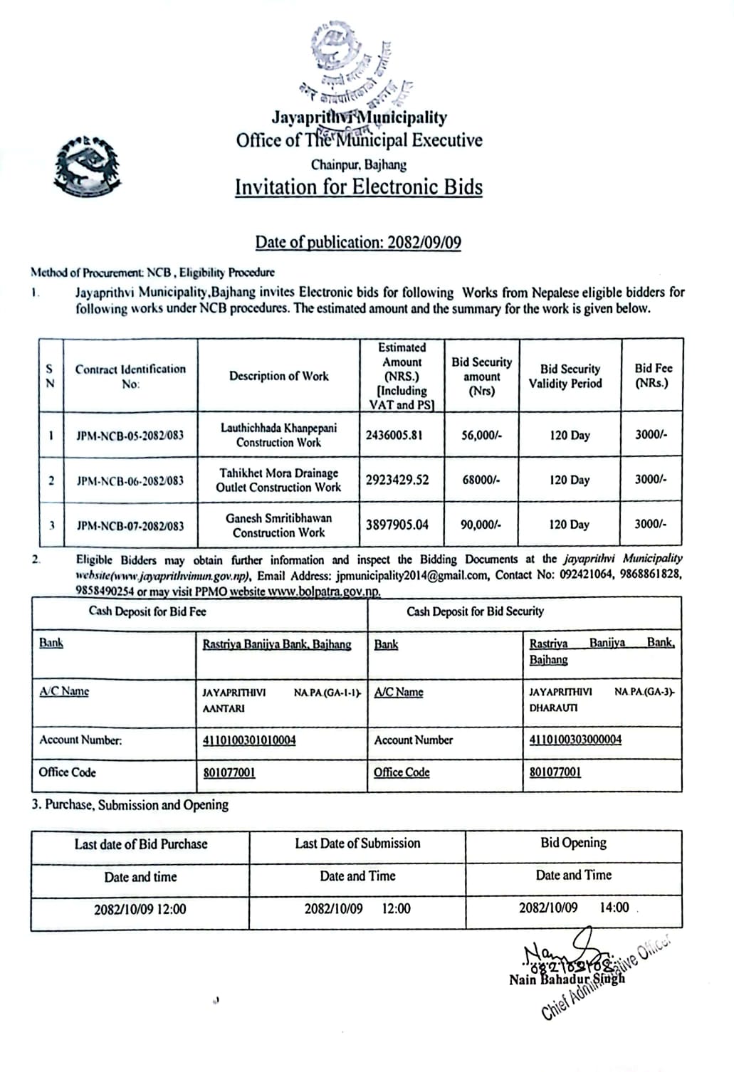 परीक्षाको मिति संसोधन गरिएको बारे जयपृथ्वी नगरपालिकाको सूचना !!!