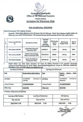 विभिन्न ठेक्काका सूचना प्रकाशन गरिएको बारे