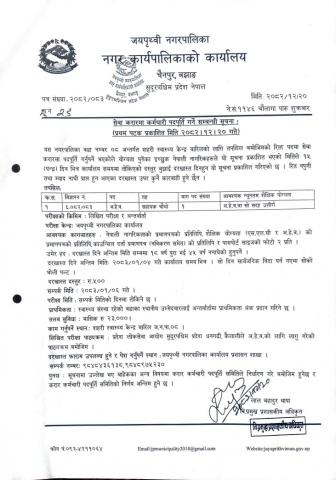 प्राविधिक प्रस्ताव स्वीकृत गरि आर्थिक प्रस्ताव खोल्ने सम्बन्धी जयपृथ्वी नगरपालिकाको सूचना !!!