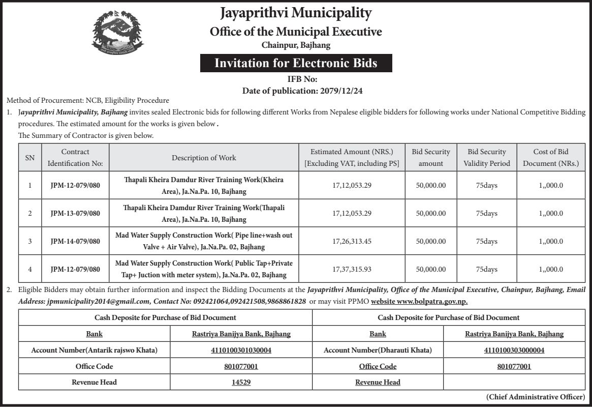 » सिलबन्दि दरभाउपत्र सम्बन्धि जयपृथ्वी नगरपालिकाको मिति २०७९-१२-२४ गतेको सूचना